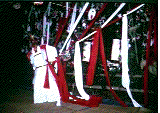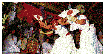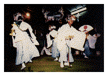Shiiba Village Japan Shiiba Village Adventures in Shiiba Schools and Government Offices Shiiba Village (Japanese) Official Homepage for Shiiba Village (Japanese) Folklore, Museums and More Japan Pages & Other Links Japan Japanese Workbook Japanese Events and Holidays Japan Exchange and Teaching (JET) Programme Other Links Background Resume & Bio Erik Kassebaum Ethnography of Adaptation Site Sponsor KASSEBAUM CONSULTING SERVICES Erik Sensei's Amazon.com Store Japanese Movies Japanese Books PC, Mac & Linux Items Books and DVDs of Interest to Historians, Analysts and Others Misc. DVDs Misc. CD-ROMs | Kagura Kagura is a form of ceremonial dance. There are many Kagura groups in Shiiba. This form of folk performance is an important part of Shiiba's culture. Kagura dances are usually all-night affairs and are usually held in shrines. It is common for people to drink sake during the performances. Most of Shiiba's Kagura dances take place during November and December. It is not uncommon for as many as 100 people to attend a Kagura dance. Men dance and women cook for the crowds. Boys and girls can perform Kagura but women cannot. This restriction is to prevent the gods from getting angry. Often, women will sing along whilst the men dance. People of all ages attend and perform Kagura. In Shiiba, there are many men who carve Kagura Masks. Not all dancers use masks. In addition there is quite a bit of variation with respect to the costumes that performers wear. |